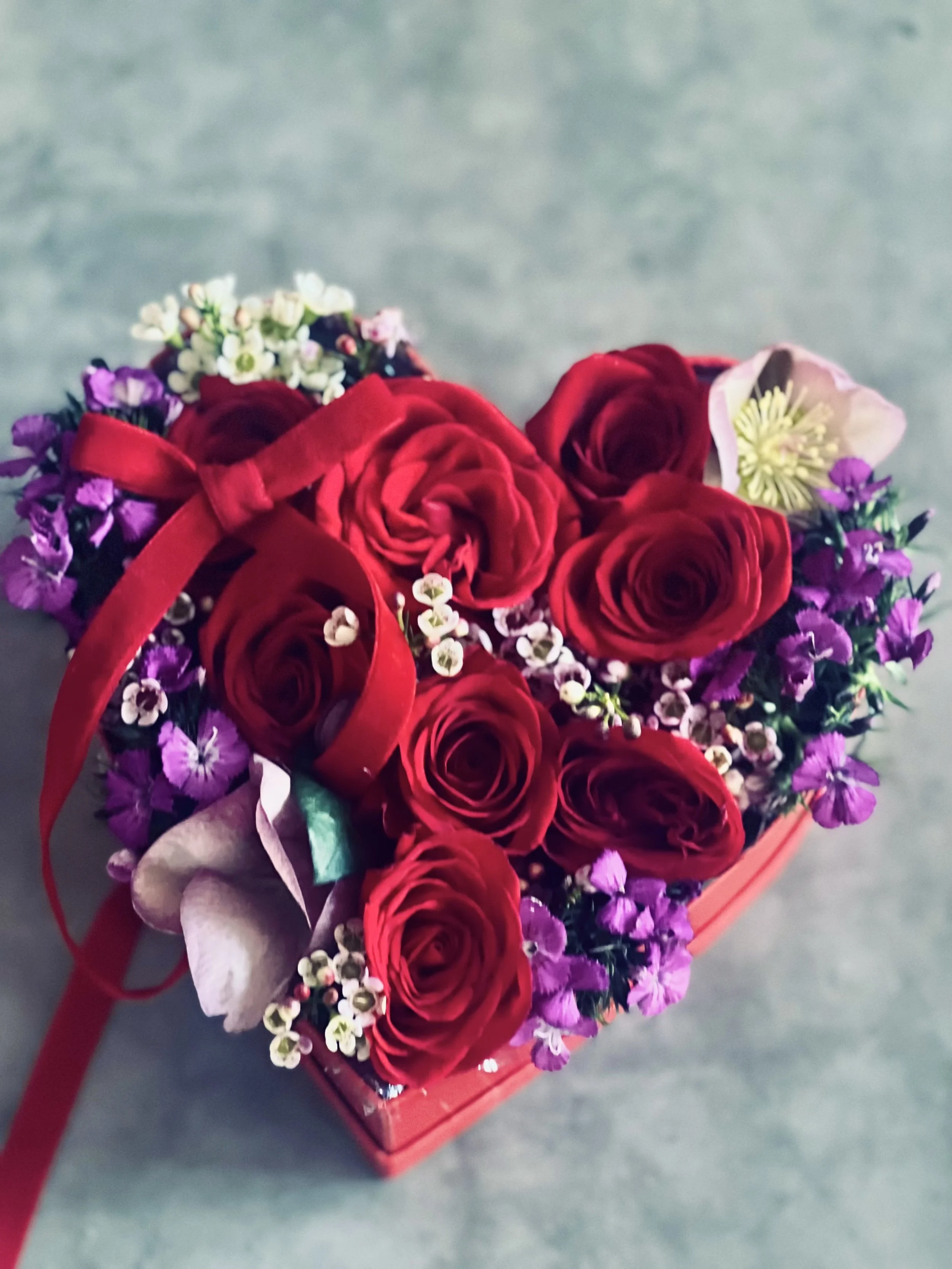 Heart Box: Add an artfully designed heart box of flowers that screams “I love you!”